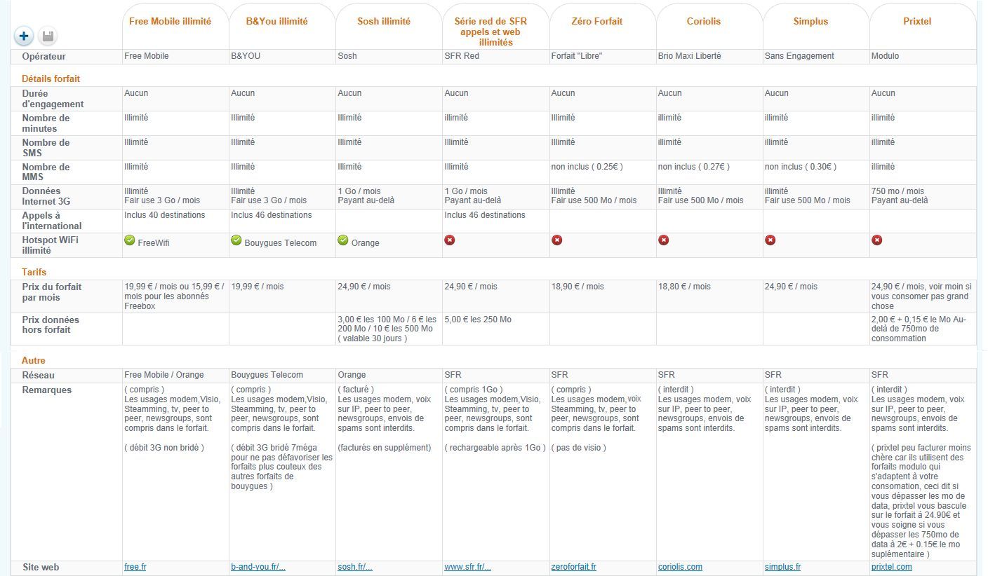 voici le tableau comparatif avec les prix et les + et les - de chaques opérateurs: