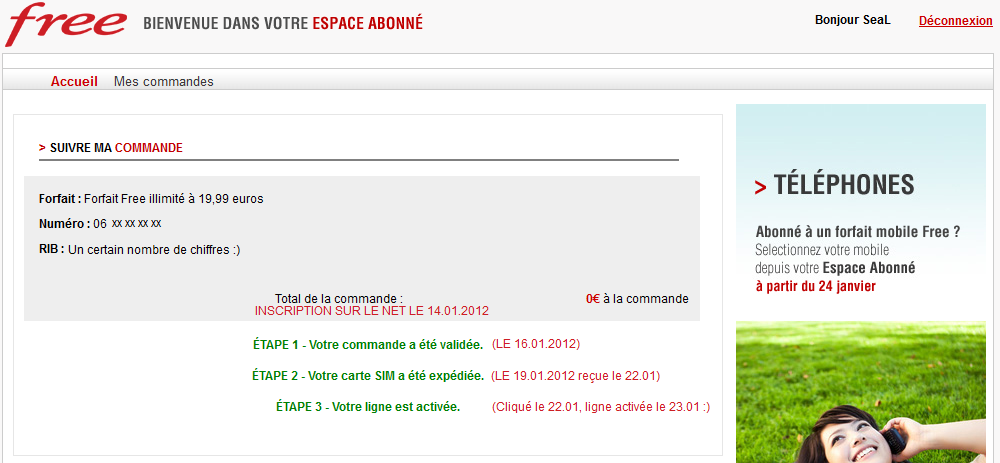 Je me suis inscrit à FREE MOBILE le 14 janvier 2012 mais ici sur le site seulement aujourd'hui (le 23 janvier donc).
